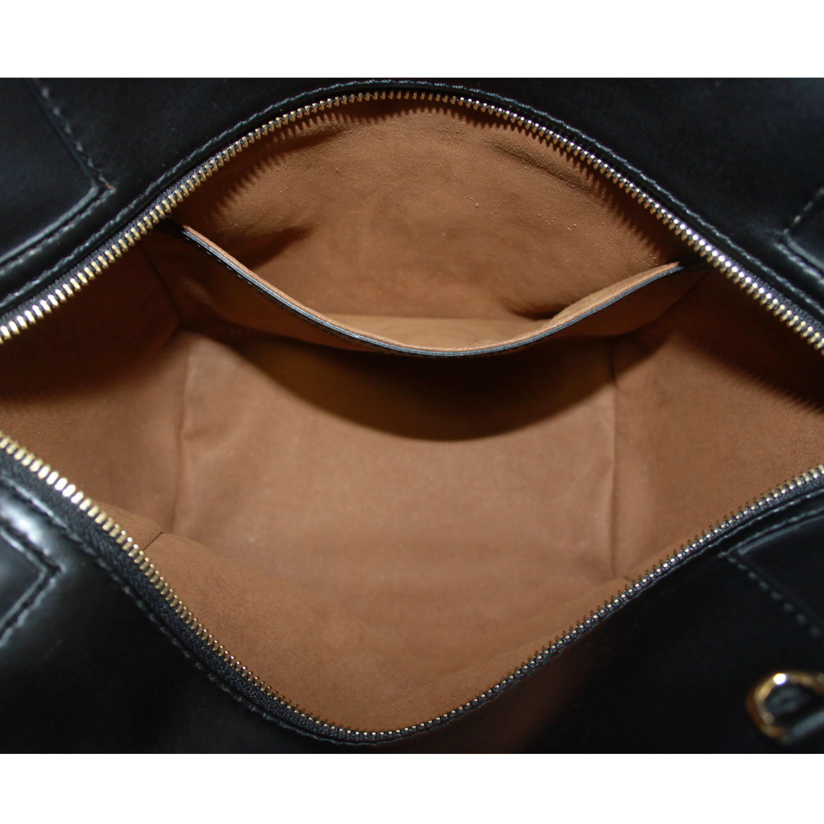 Small Black Faux Leather Rolled Handles, Drop: 3″ Adjustable Faux Black Leather Shoulder Strap, Drop: 22.5″ |